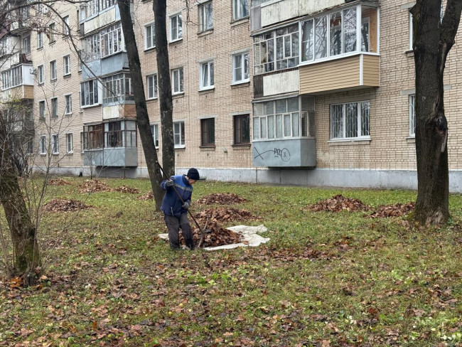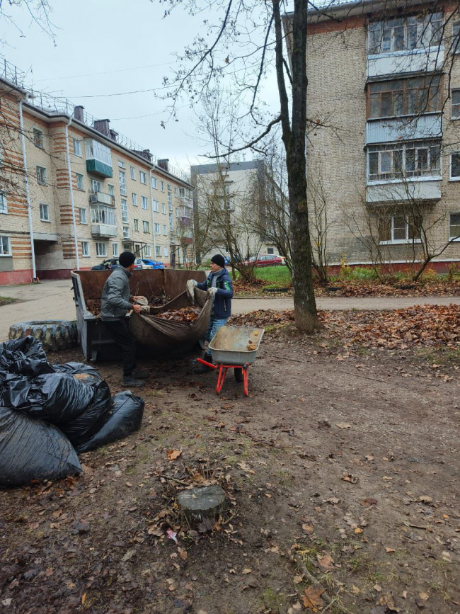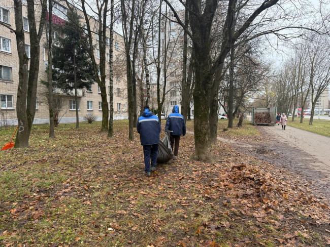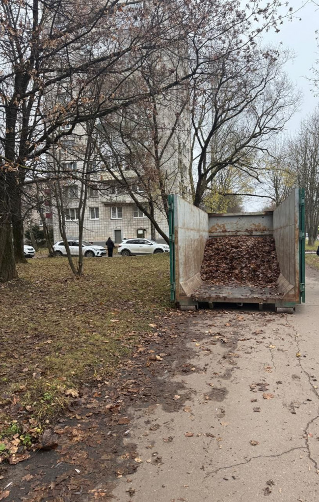 На этой неделе в рамках осеннего месячника провели уборку опавшей листвы и мусора на придомовых территориях по пр. Ленина, д. 59,63,92,94,96,114,118,122.
