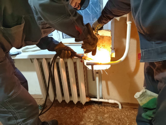 Муниципальная управляющая компания провела работы по замене подводок к батареям по пр. Ленина, 108.