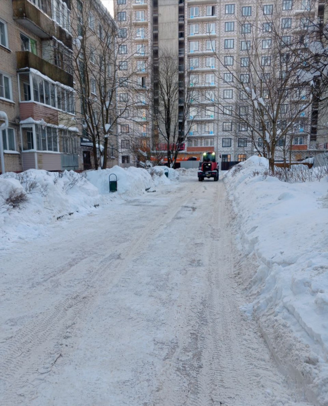 Муниципальной управляющей компанией проведены мероприятия по механизированной расчистке внутридворовой дороги, прилегающей к дому № 6 по улице Мира.