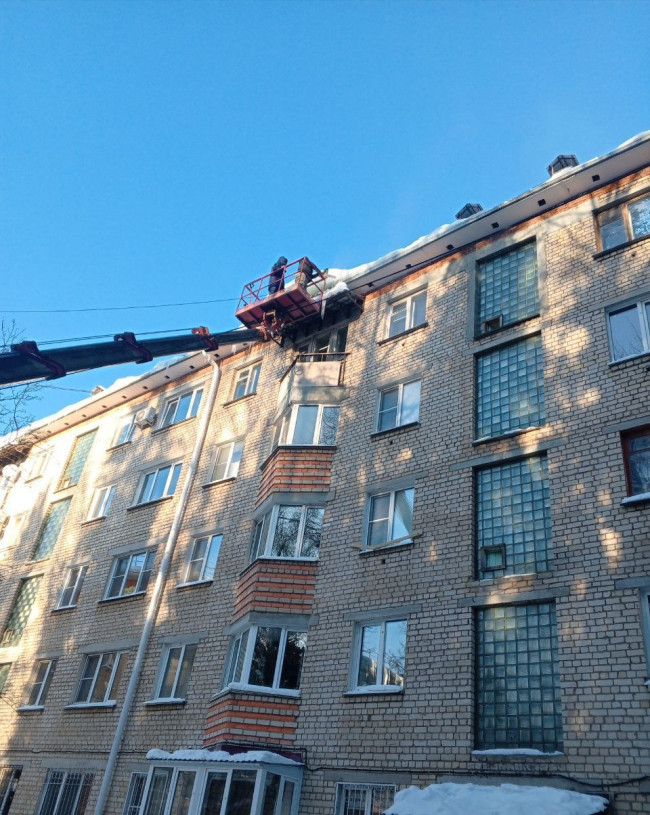 Муниципальная управляющая компания выполнила очистку кровли, водосточных воронок и козырьков МКД, по адресам: ул. Парковая, д. 2; ул. Любого, д. 3; ул. Мира, д. 5; ул. Гурьянова, д. 7