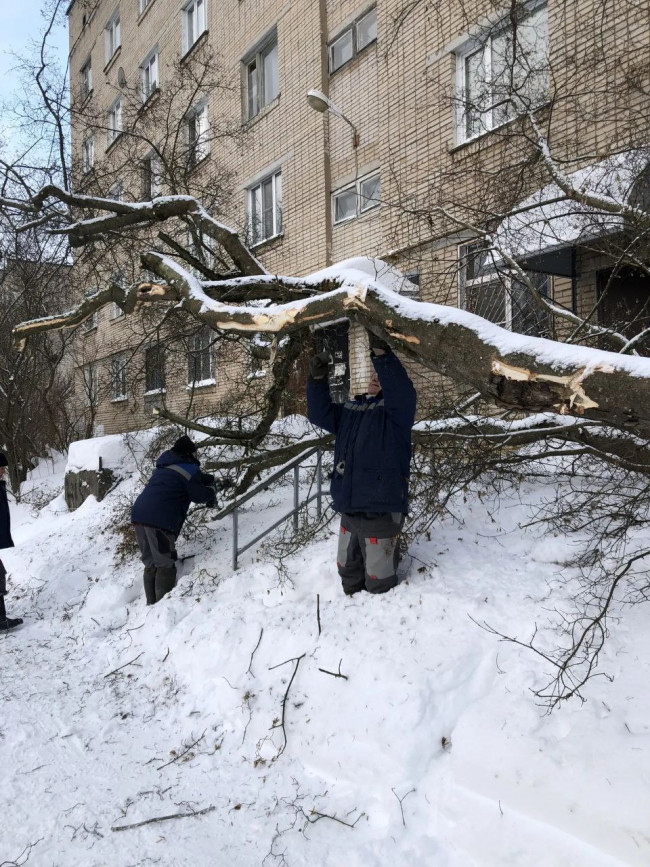 На улице Любого, дом 6, муниципальная управляющая компания убрала упавшее дерево с проезжей части.