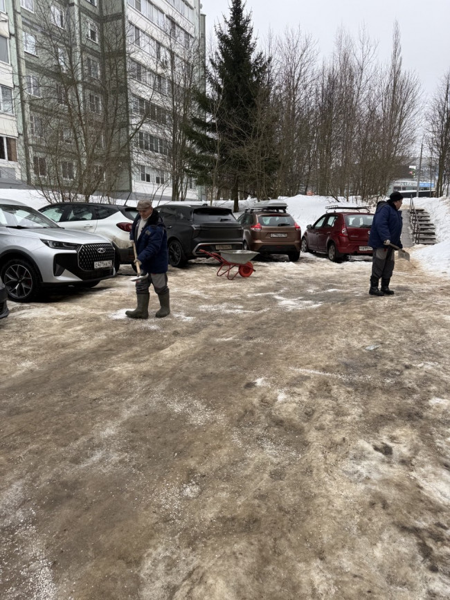 По адресу ул. Гагарина, д. 46 муниципальная управляющая компания обработала противогололедным реагентом придомовую территорию. Механизированная уборка будет проведена после действия реагента.