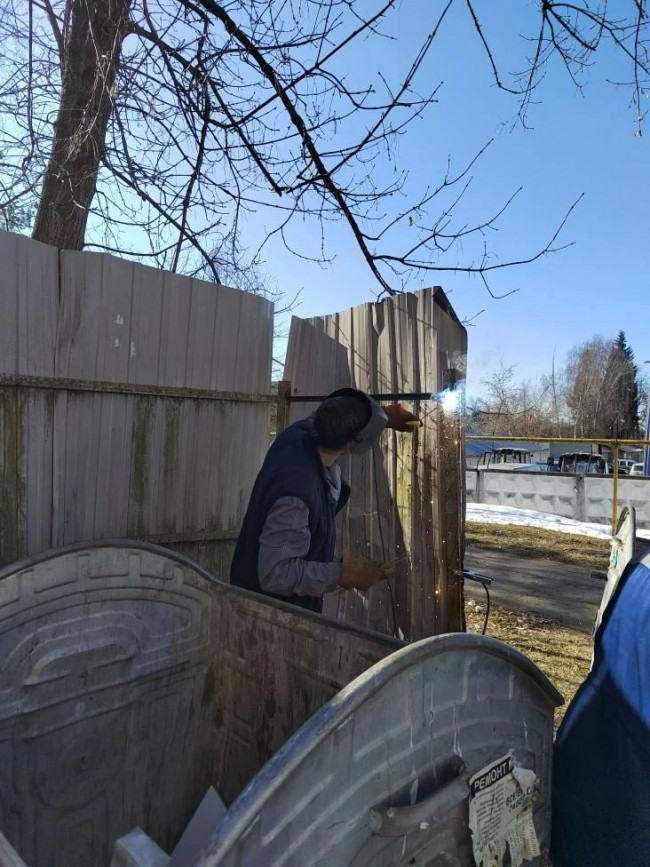 Отремонтировали ограждения контейнерной площадки по адресу: ул. Любого, 8.