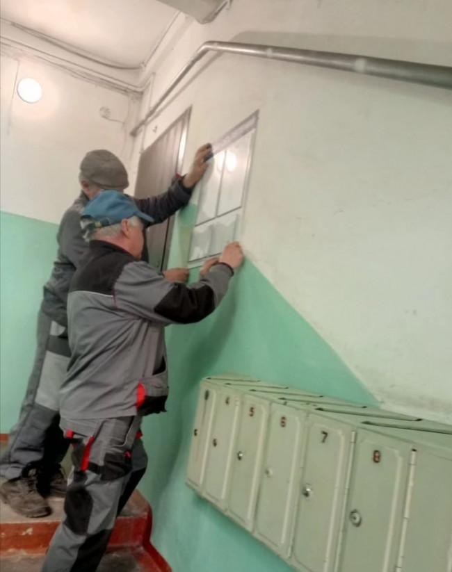 В подъезде 1 дома 63 на пр. Ленина установили информационную доску и табличку с нумерацией.