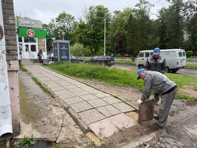 В Администрацию поступило обращение от жителей, проживающих по адресу пр. Ленина д. 79, о просьбе отремонтировать участок пешеходной зоны. Работниками МАУ «Коммунальное управление» был произведен ремонт пешеходной зоны