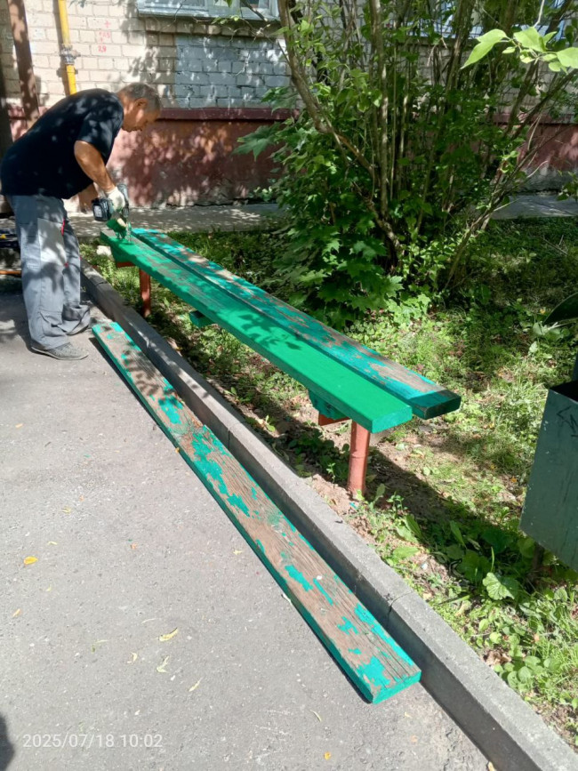 Управляющая компания МАУ «Коммунальное управление» завершила ремонт скамеек по ул. Гурьянова, дом 1 и дом 7.