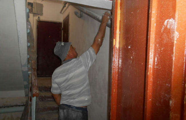 В доме №5 по улице Победы стартовал ремонт подъезда. Управляющая компания МАУ "Коммунальное управление" приступила к обновлению общедомового пространства.