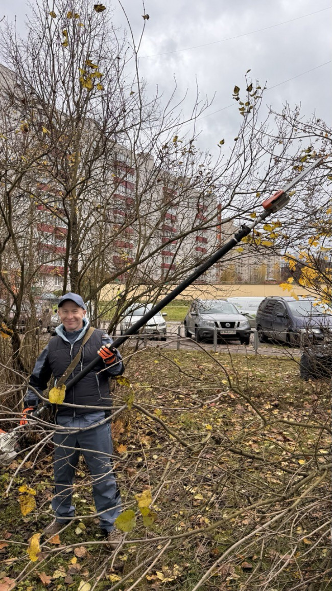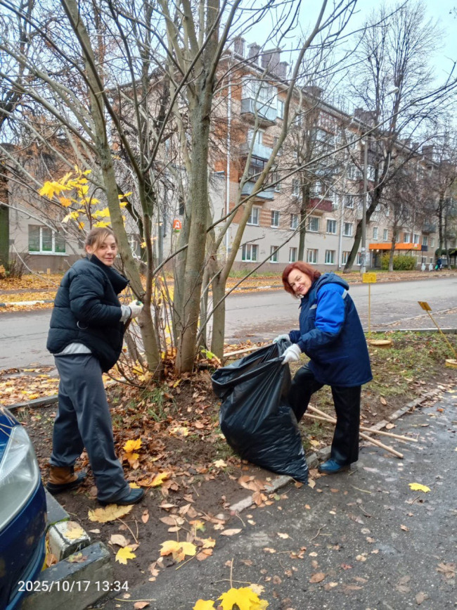 В Обнинске проходит пора субботников. Работники МАУ «Коммунальное управление» убрали городскую территорию по улице Любого от опавшей листвы и мусора. Провели осеннюю обрезку лиственных кустарников.