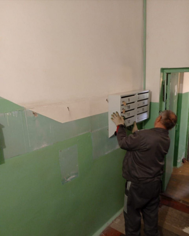 По пр. Маркса, д. 76 работники МАУ «Коммунальное управление» выполнили в подъезде косметический ремонт стены и установили новые почтовые ящики.